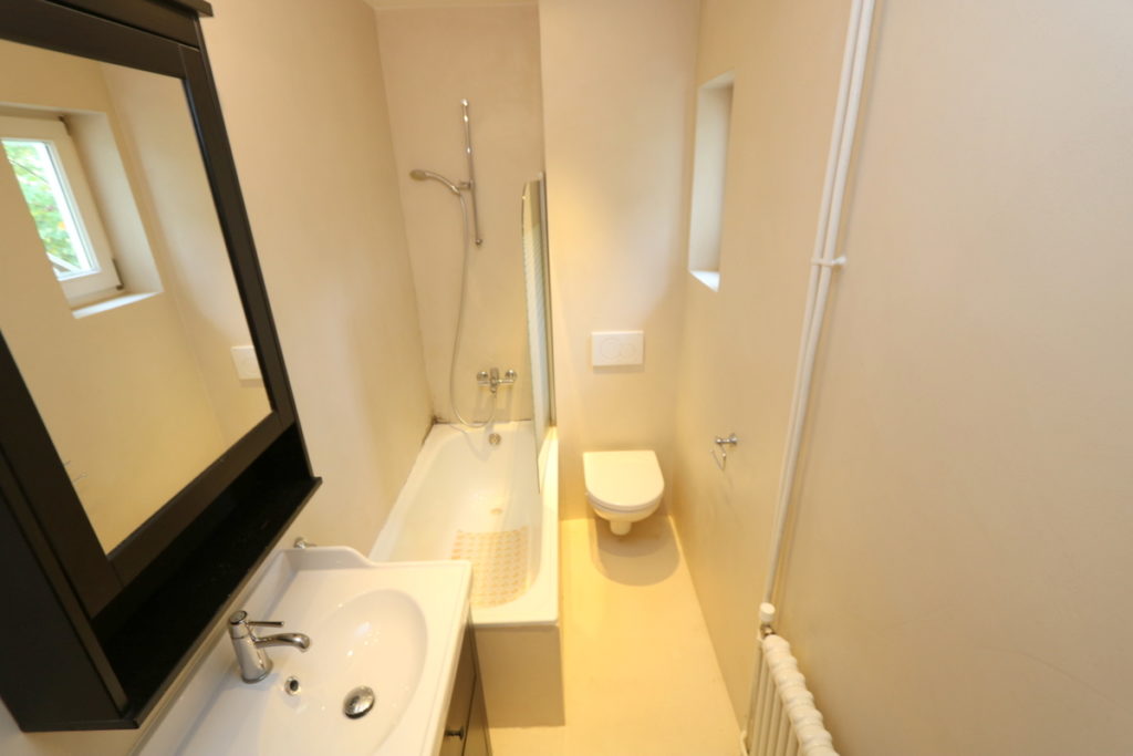 Au 1er étage, logement de 2,5 pièces : salon-cuisine intégrée et équipée, chambre à coucher, salle de douche.