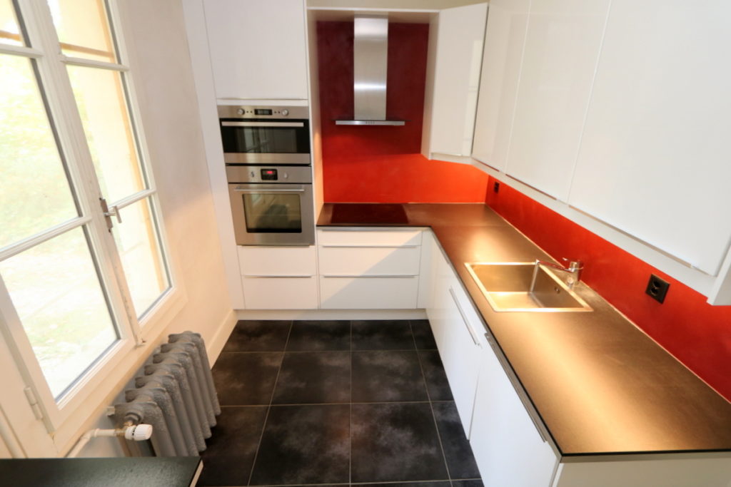 Au rez de jardin, logement de 4 pièces : hall d’entrée, grand salon, salle à manger, cuisine équipée, dressing, chambre à coucher, salle de bains attenante, WC d’entrée avec douche.